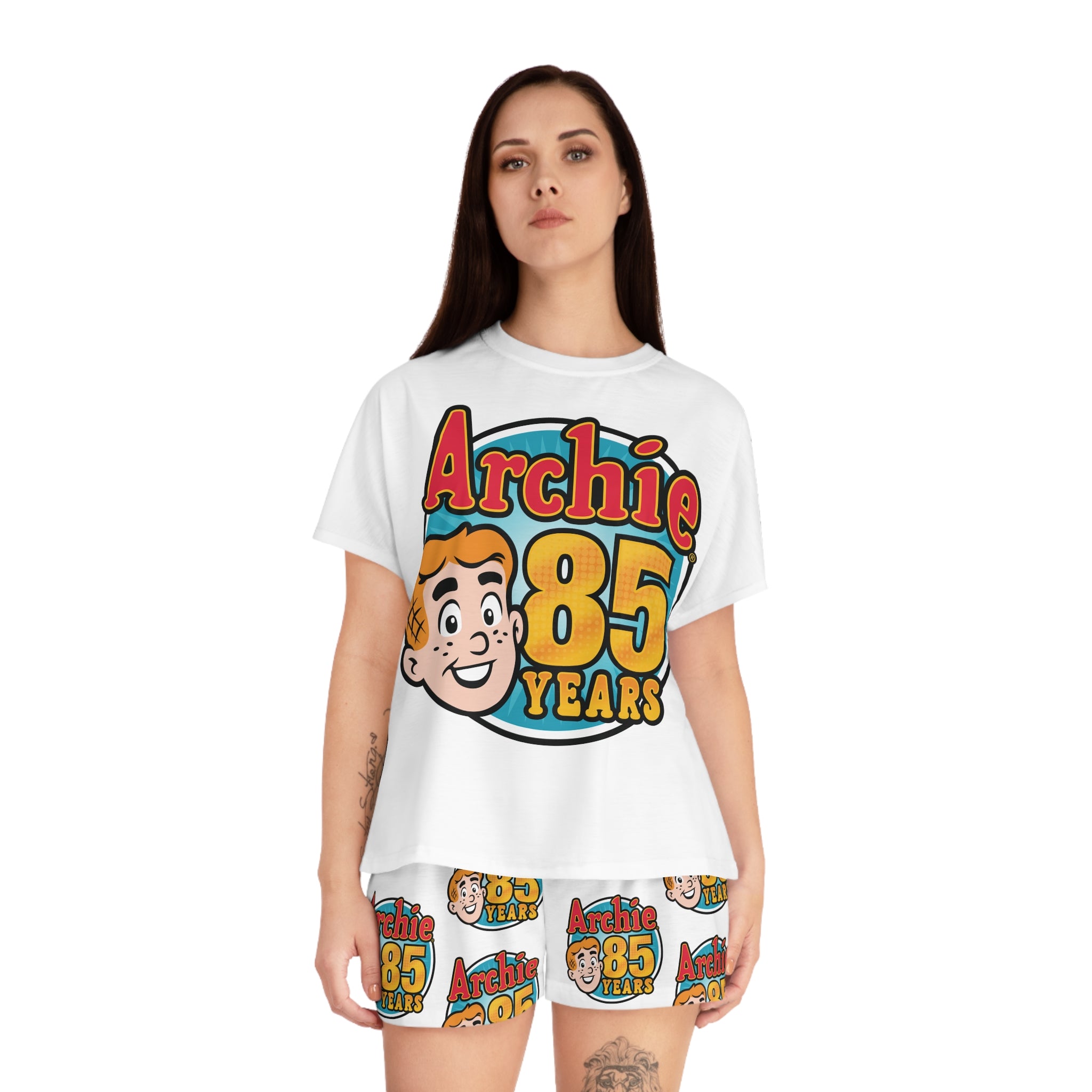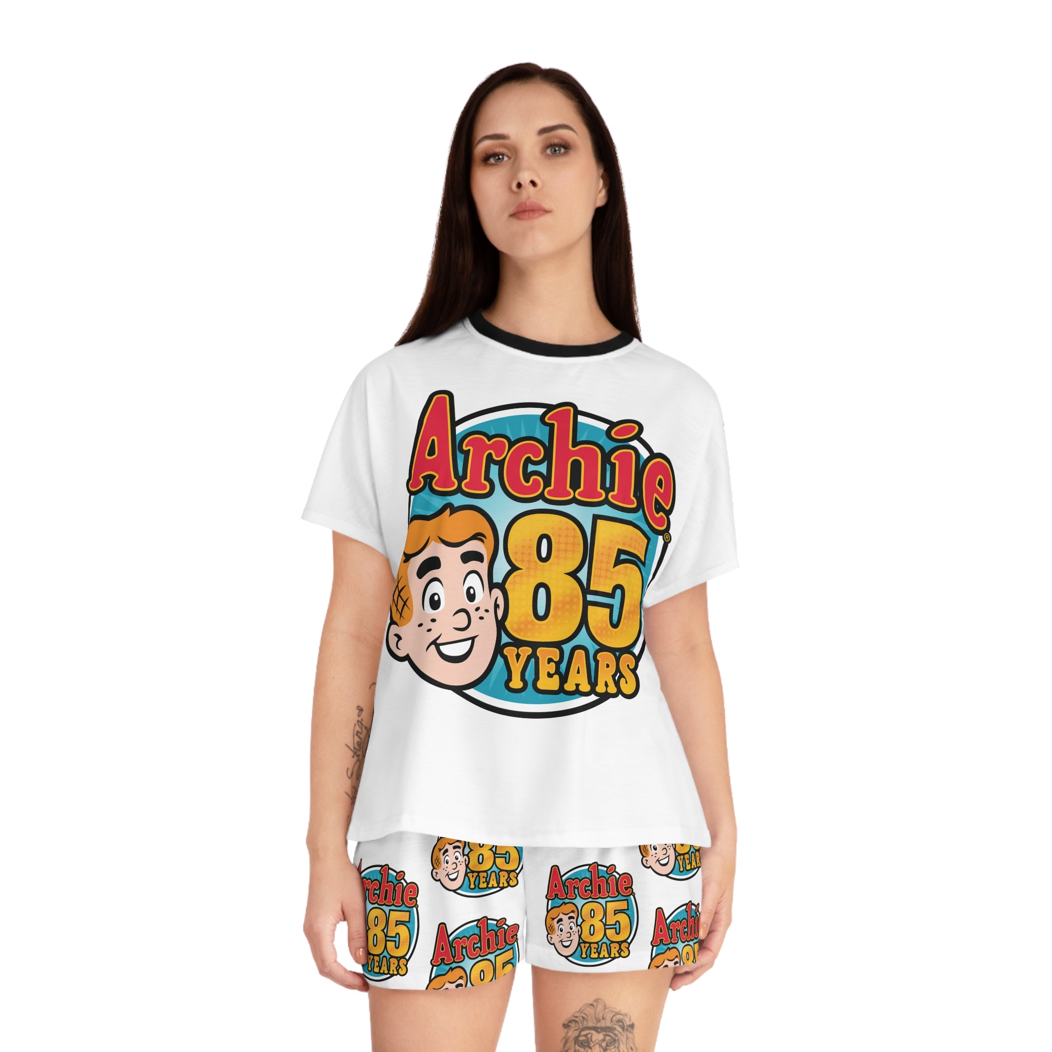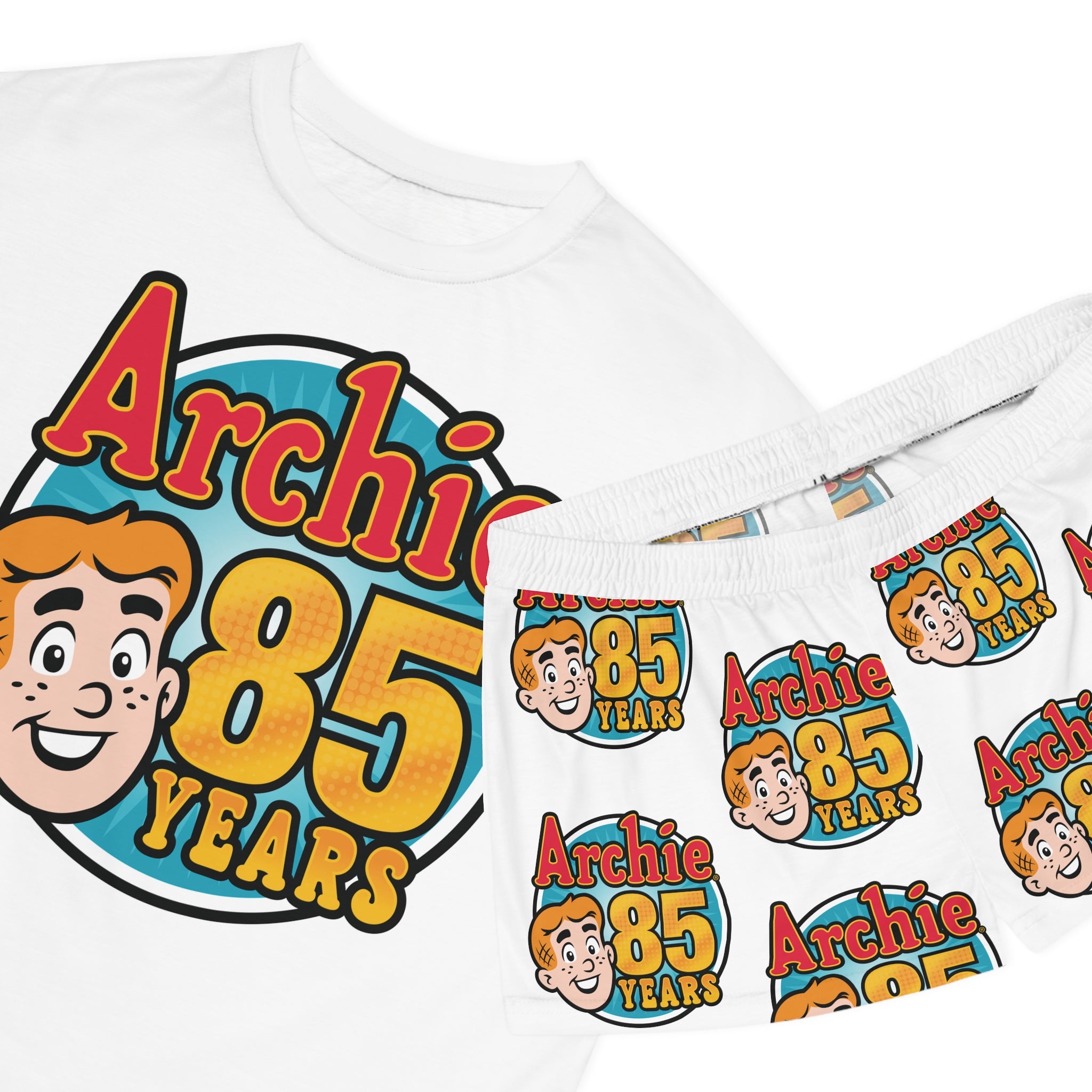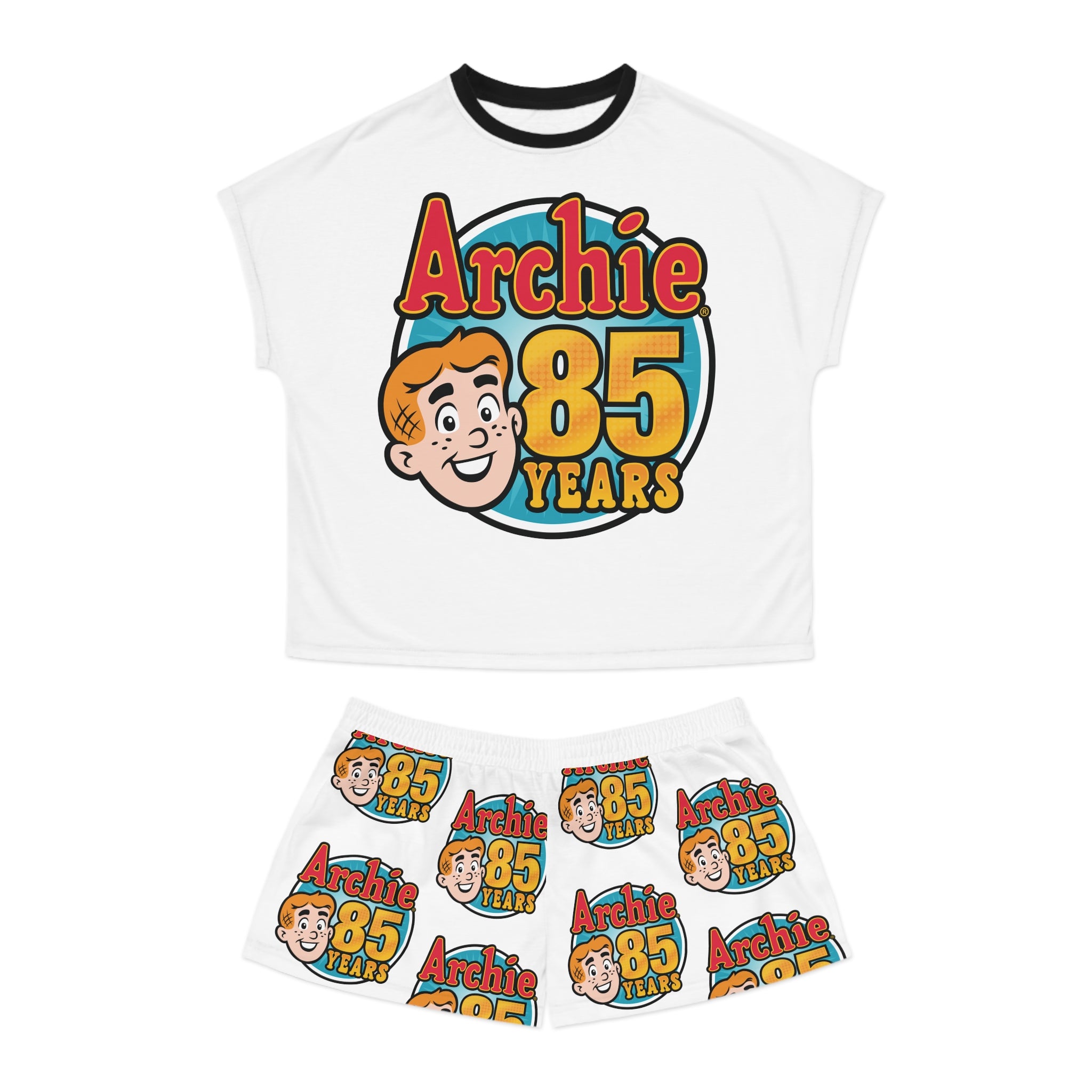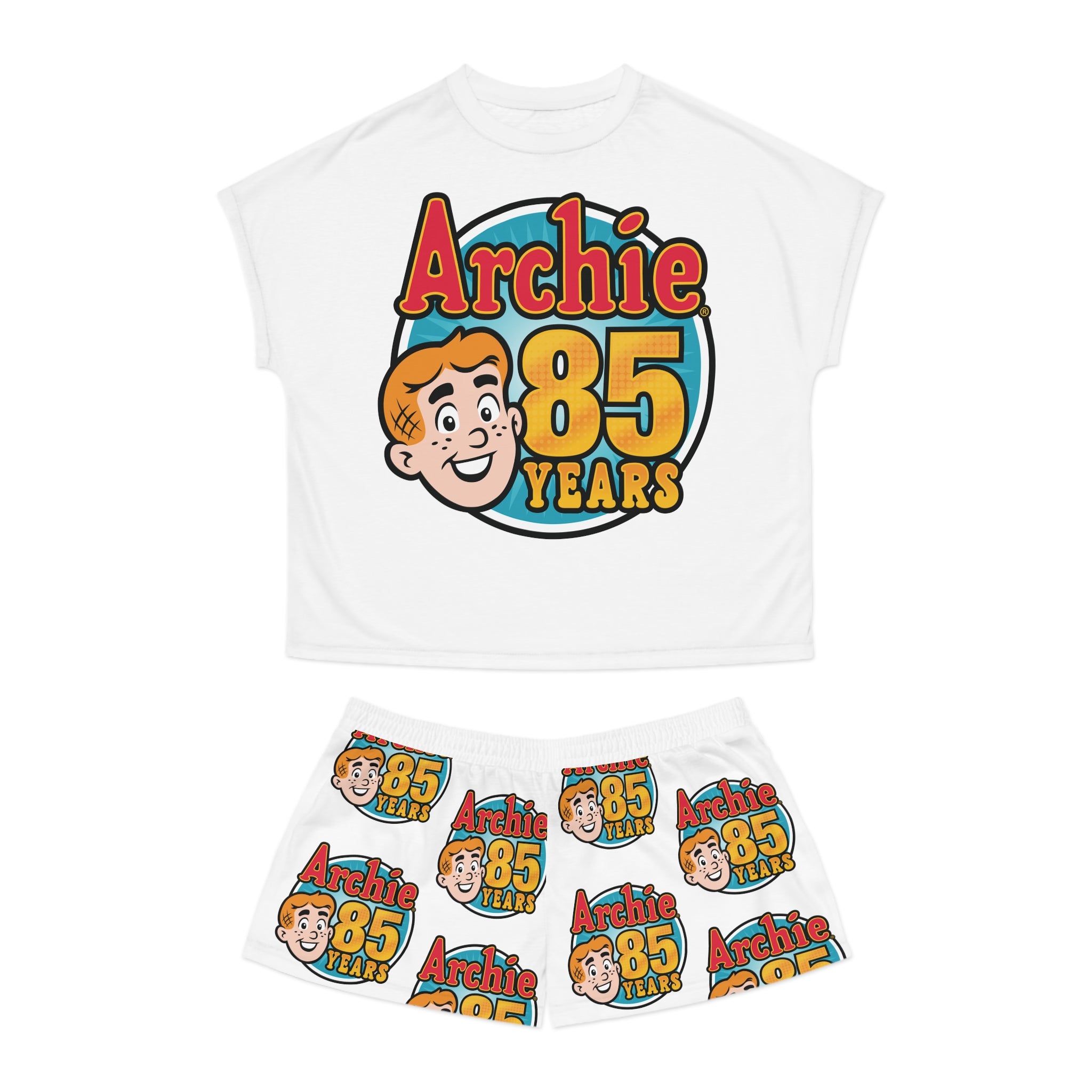 The Archie 85th Anniversary Design Women's Short Pajama Set features the official 85th anniversary logo. Archie Andrews may be celebrating his 85th anniversary, but he doesn't look a day over sixteen! That's right; Archie made his big debut way back in 1941, and is hotter than ever over eight decades later!
