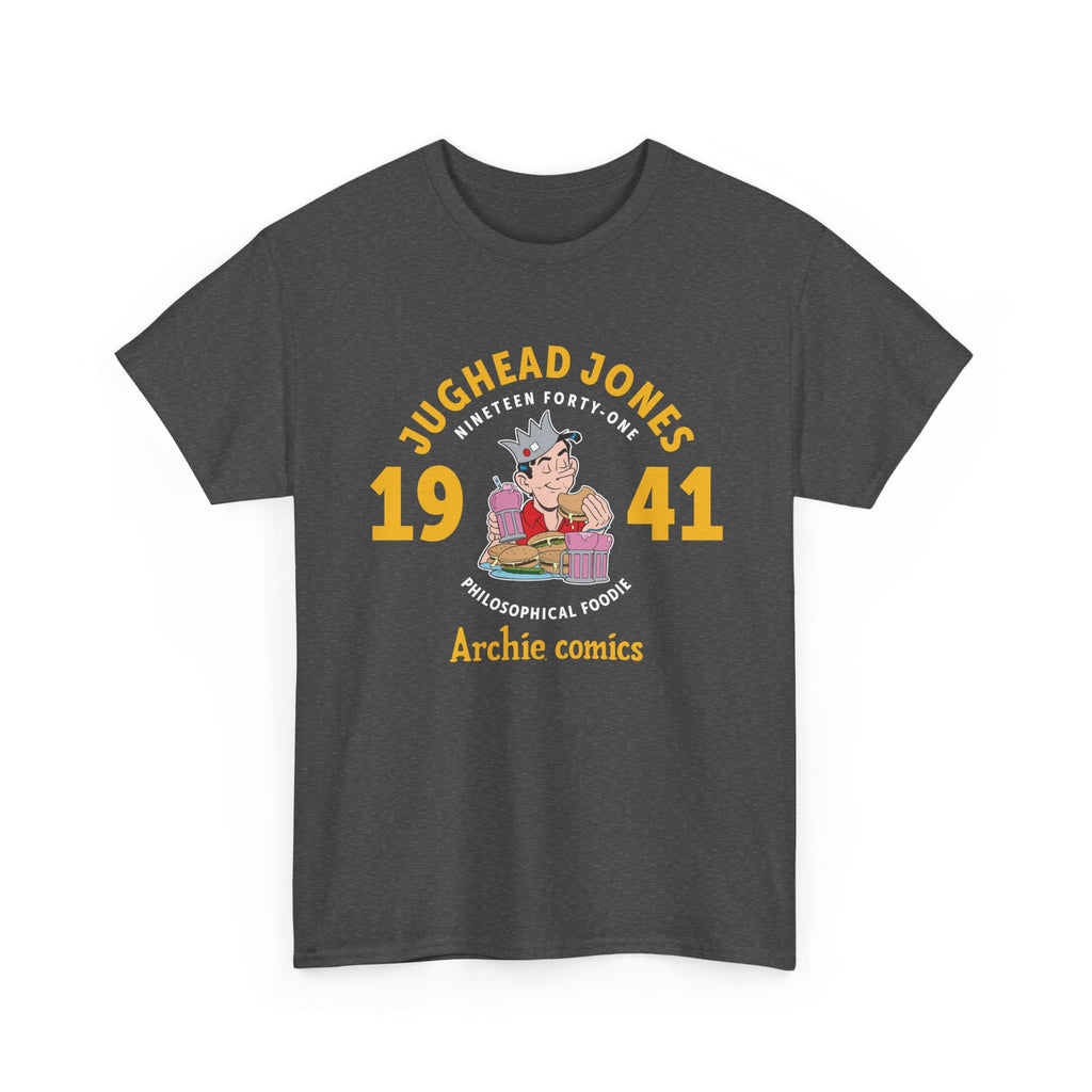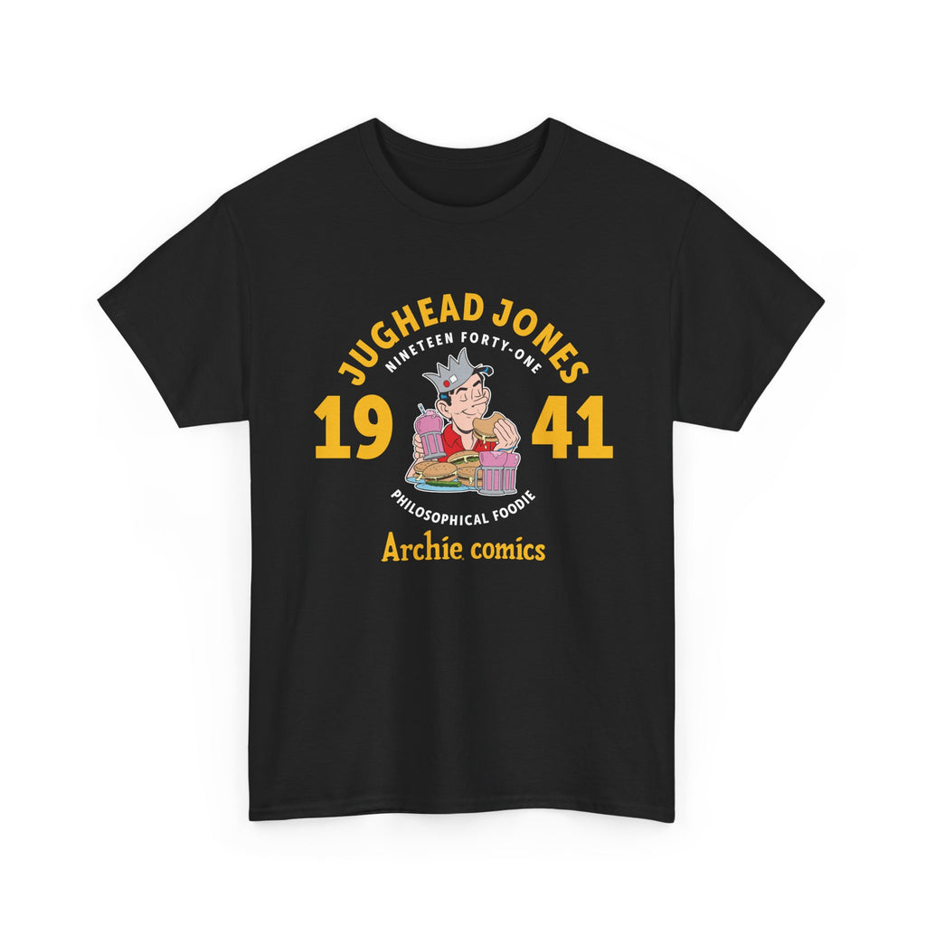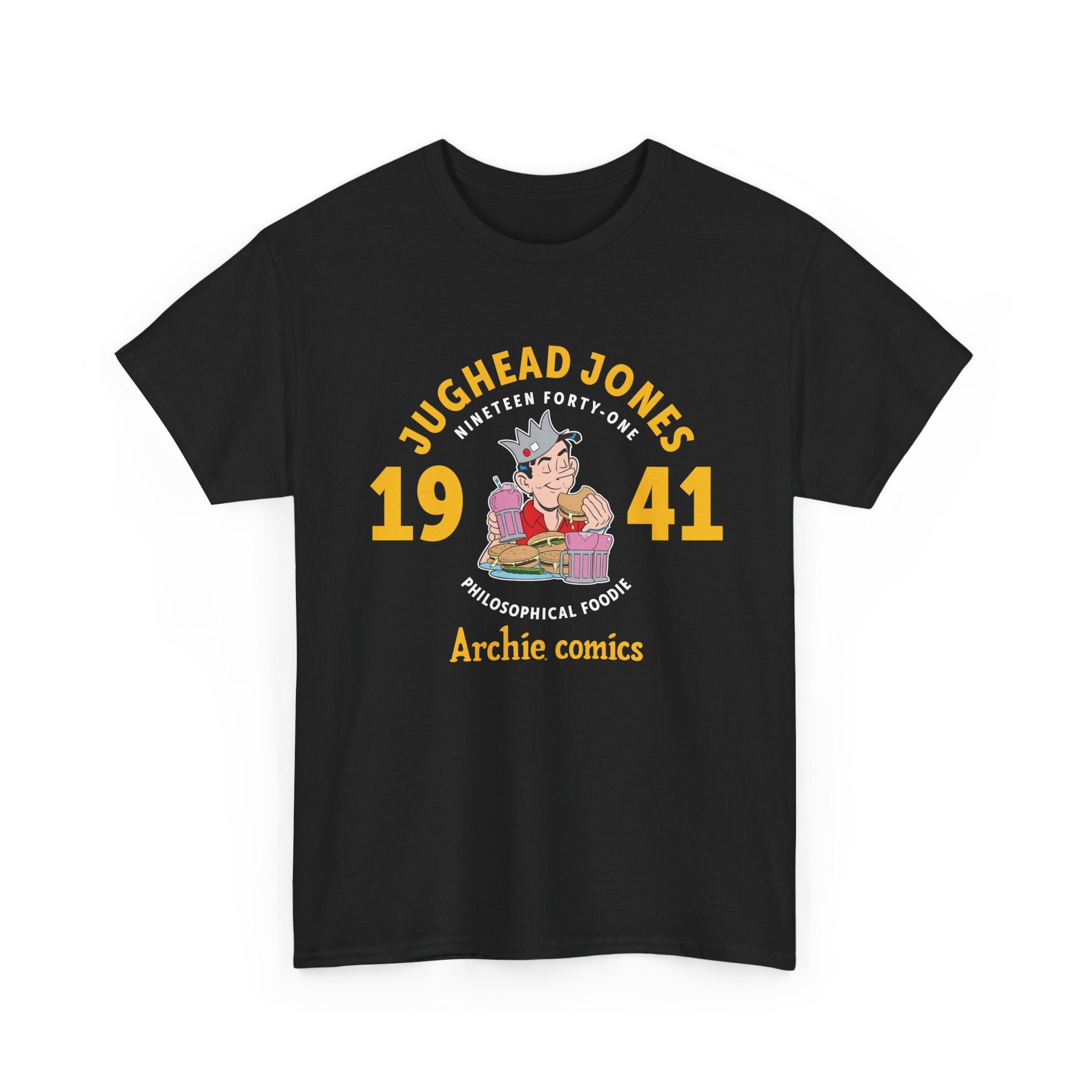 This T-shirt showcases Jughead Jones in action, enjoying his favorite pastime — eating! Since 1941, Jughead has been delighting comic fans around the world with his quirky charm and insatiable appetite.