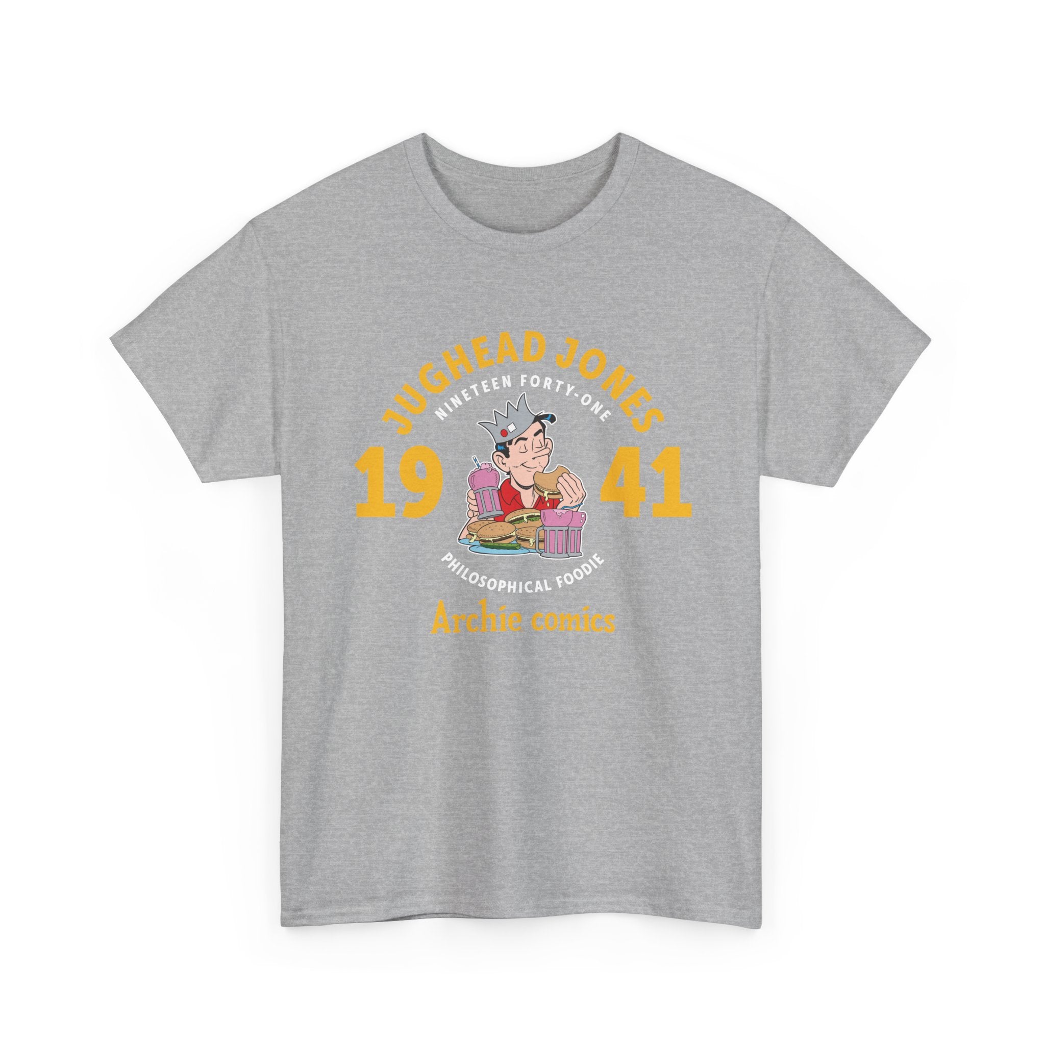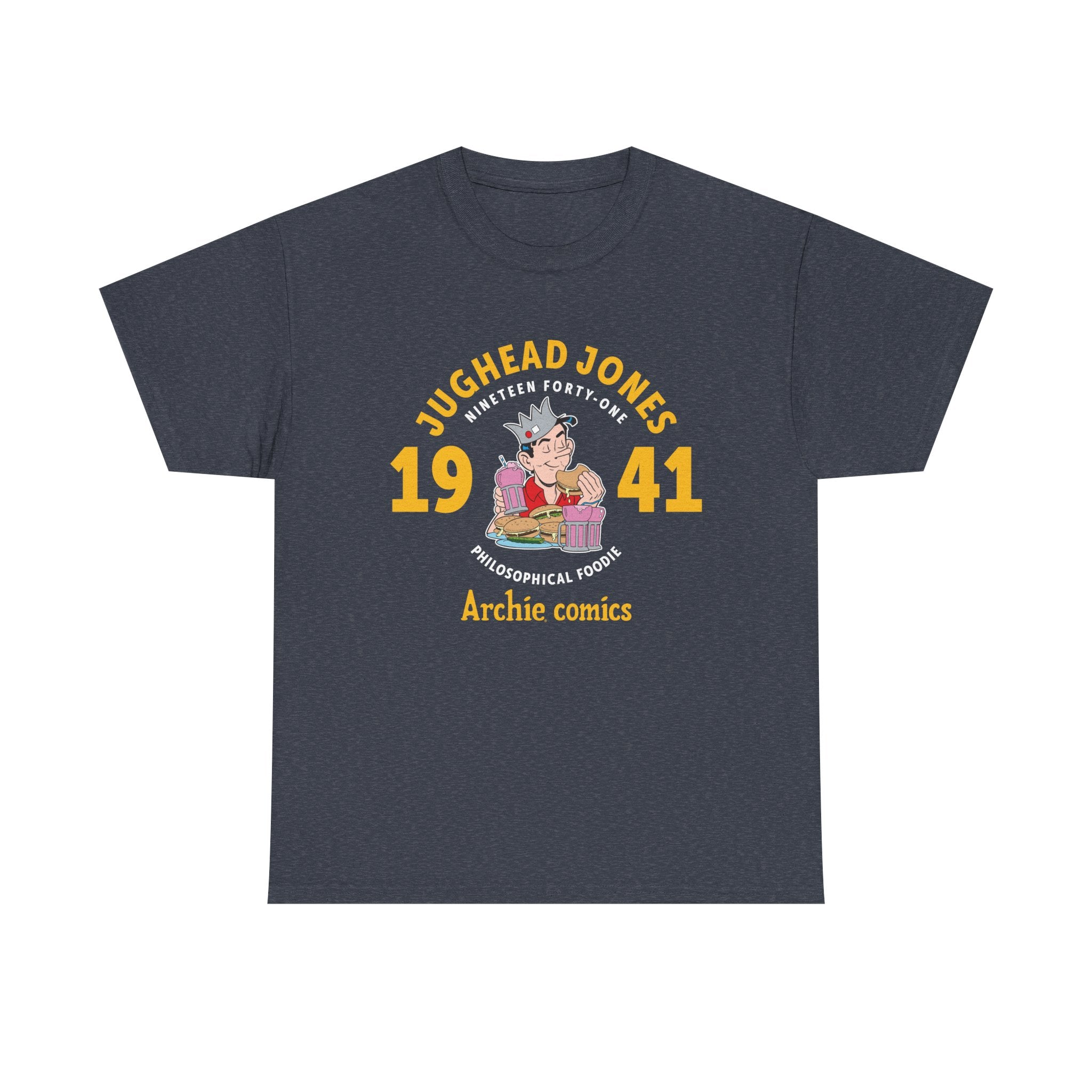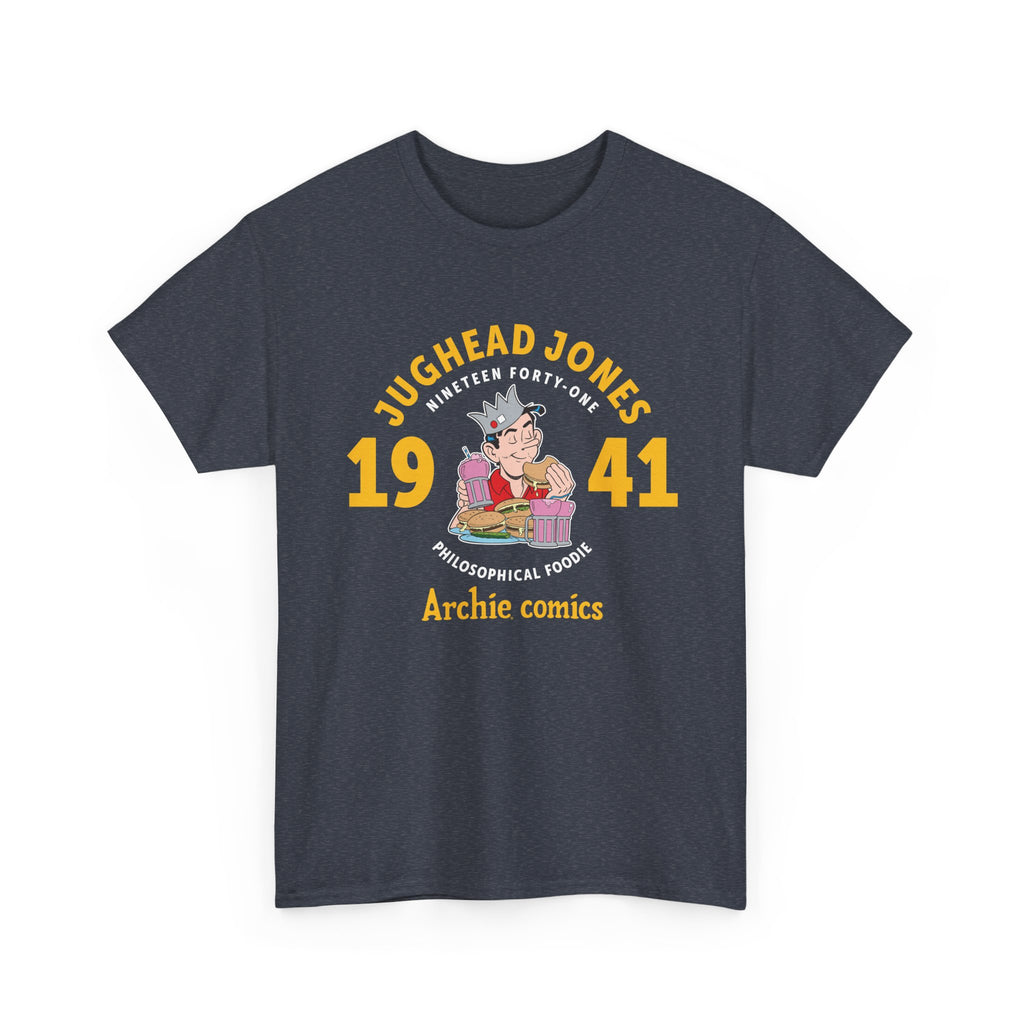 This T-shirt showcases Jughead Jones in action, enjoying his favorite pastime — eating! Since 1941, Jughead has been delighting comic fans around the world with his quirky charm and insatiable appetite.