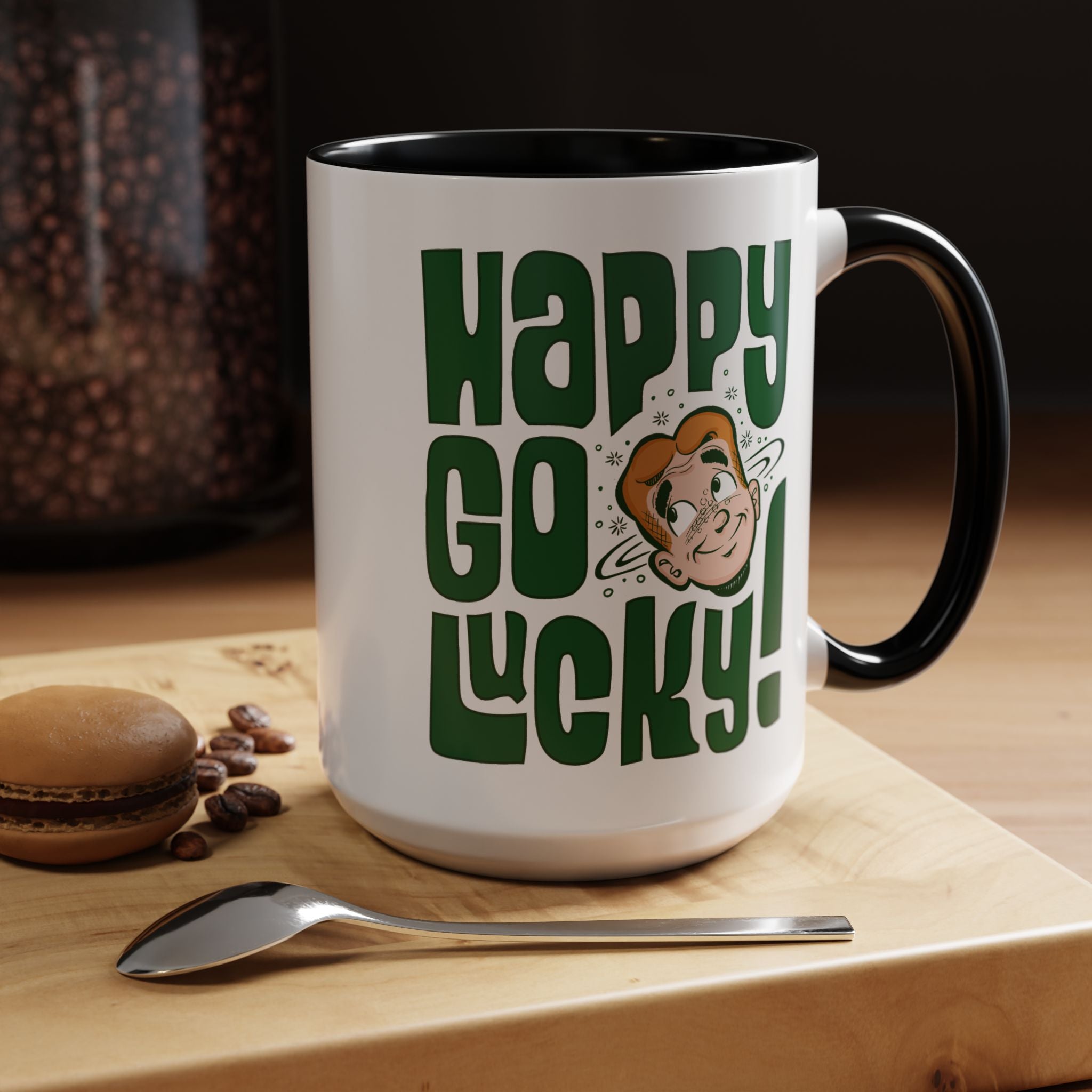 Celebrate St. Patrick's Day all year around with the "Archie Happy Go Lucky!" design accent mug.