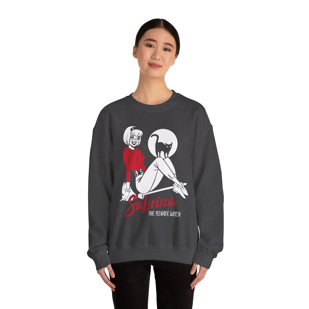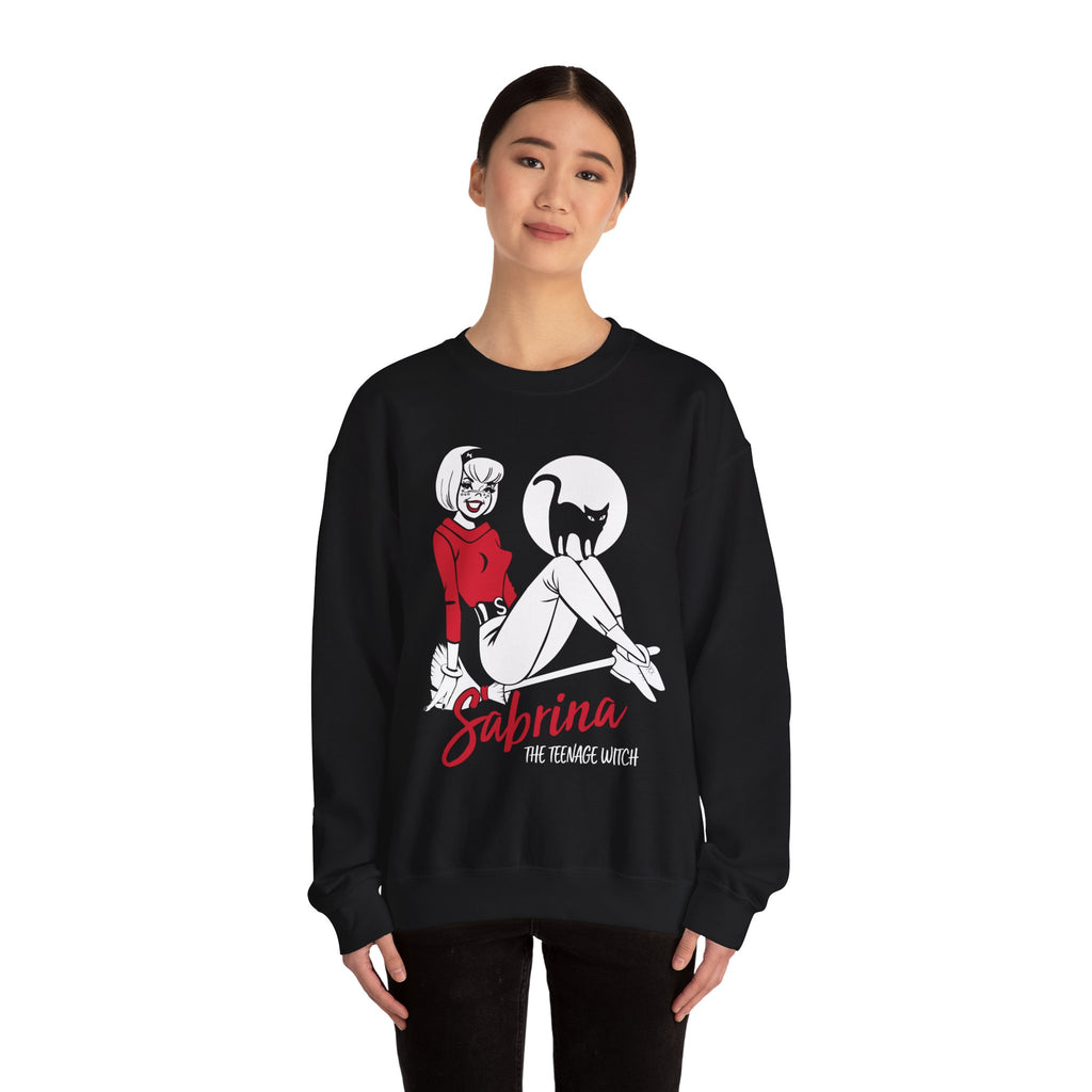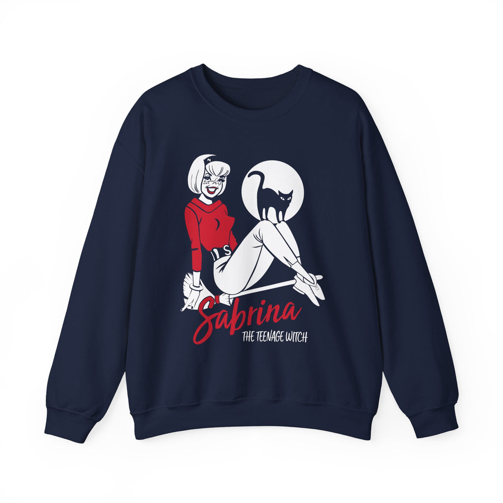 Rep all things witchy with this super soft and comfy Sabrina the Teenage Witch on Broom Sweatshirt. Featuring retro Archie Comics Sabrina artwork, this sweatshirt is a must-have for any Sabrina fan! Ideal for wearing on Halloween, comic conventions, or just as a fun everyday tee.