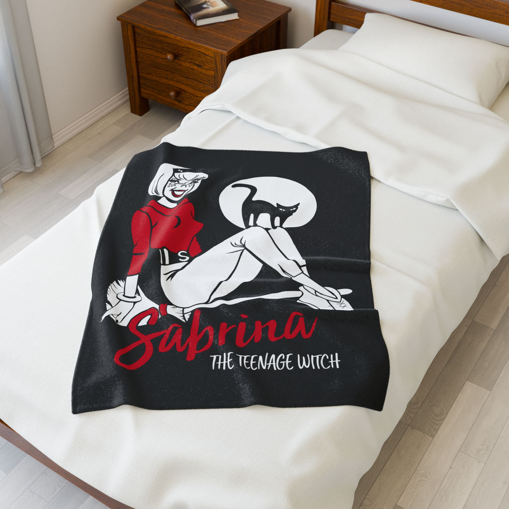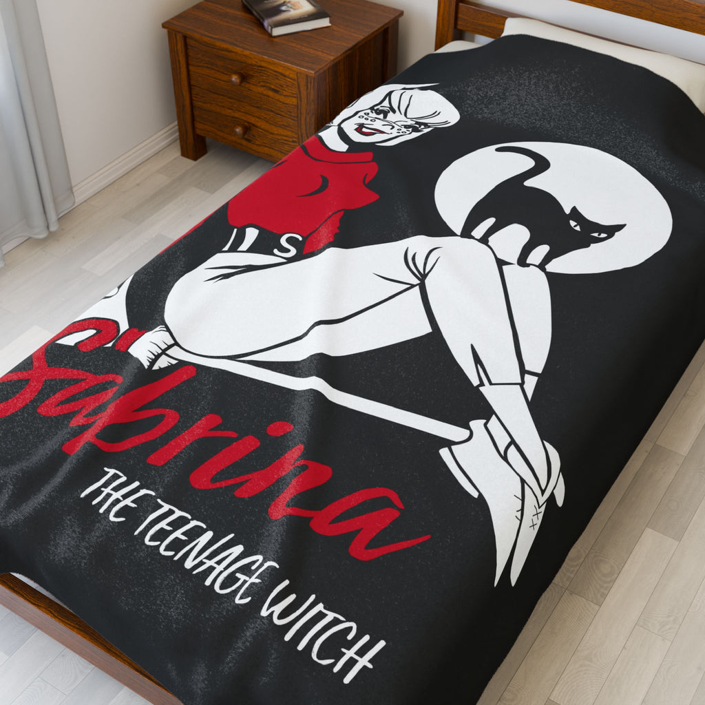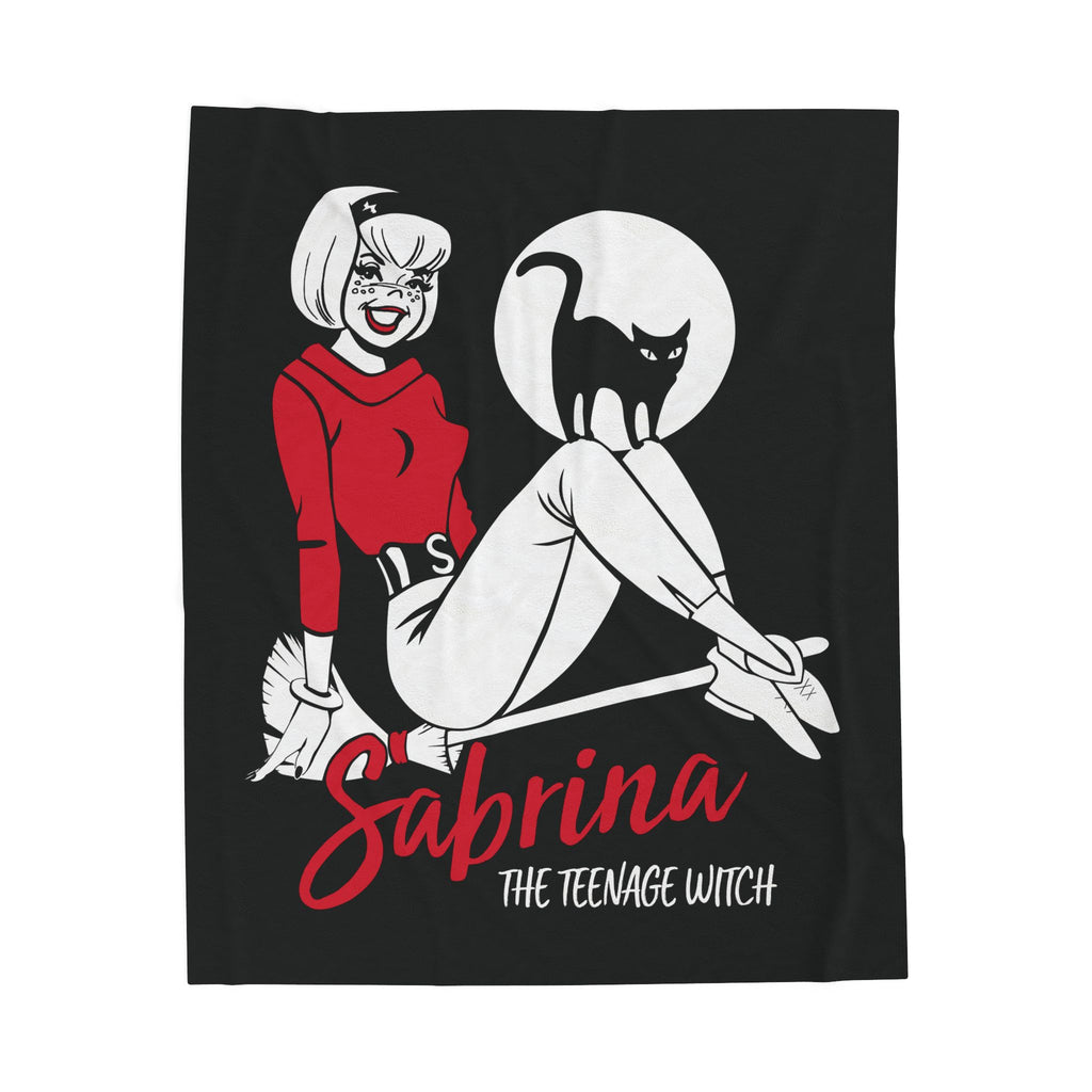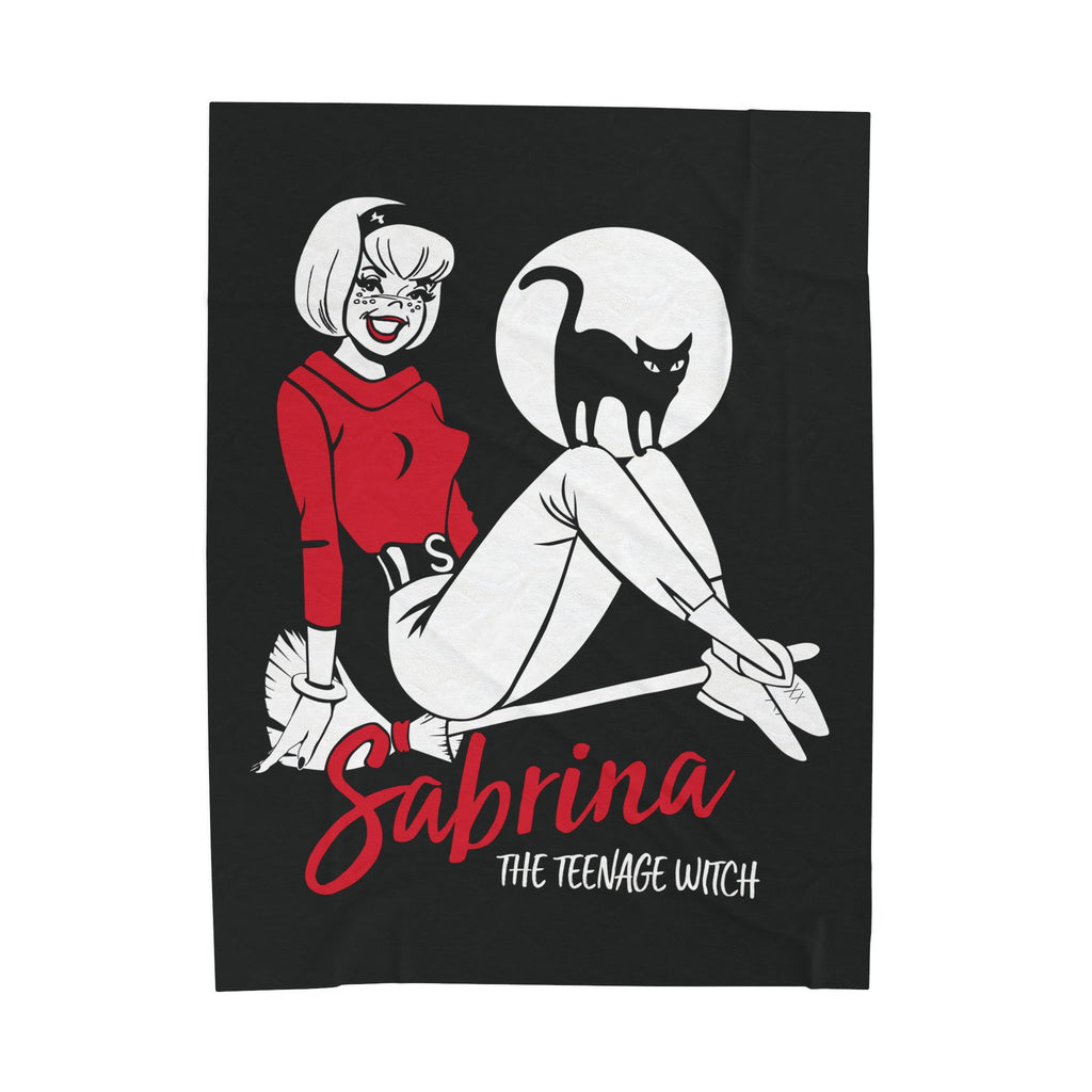 Create a cozy and warm atmosphere at home with this plush velveteen blanket with the Sabrina the Teenage Witch on Broom Design. Featuring retro Archie Comics Sabrina artwork, this blanket is a must-have for any Sabrina fan! It is soft to the touch and perfect for any home.