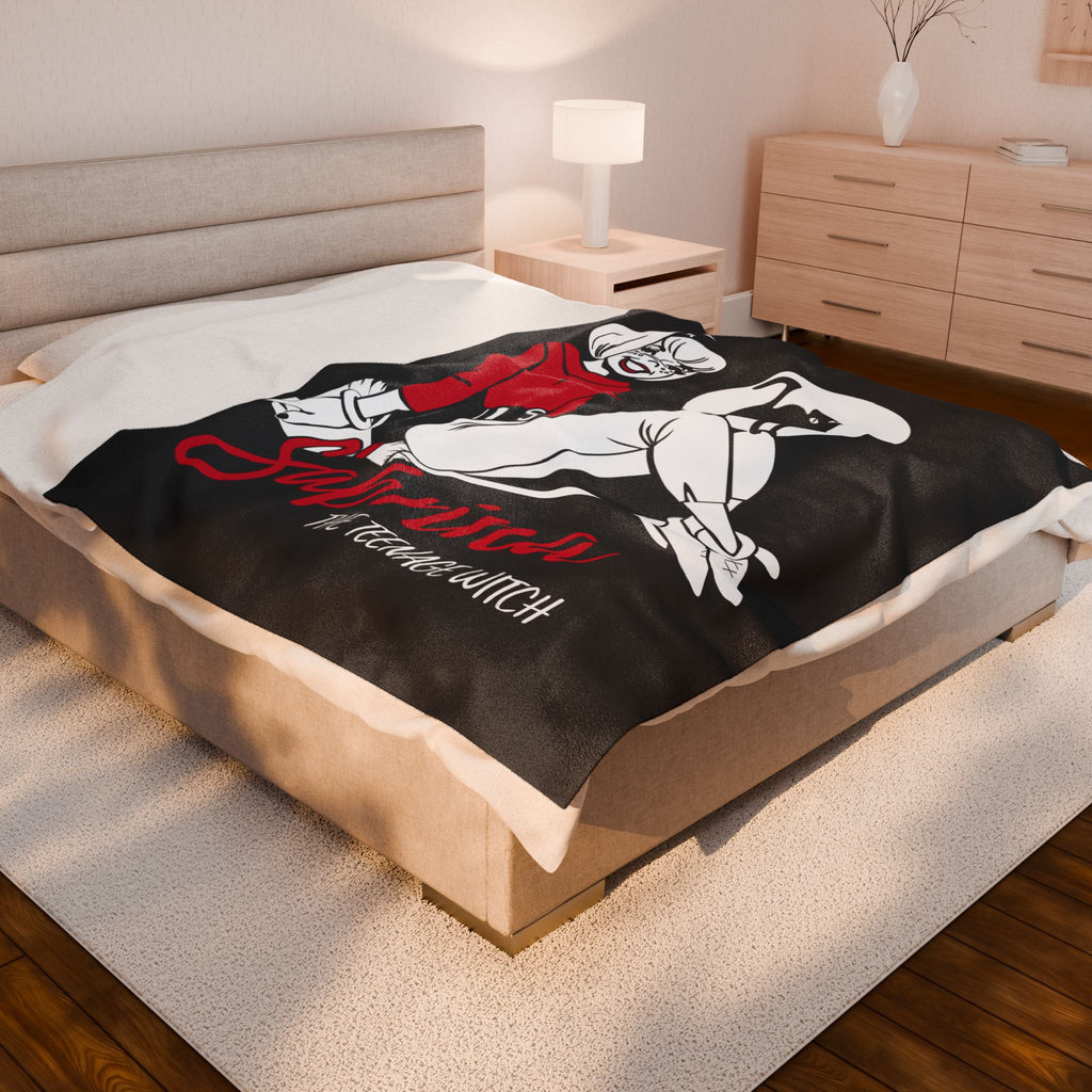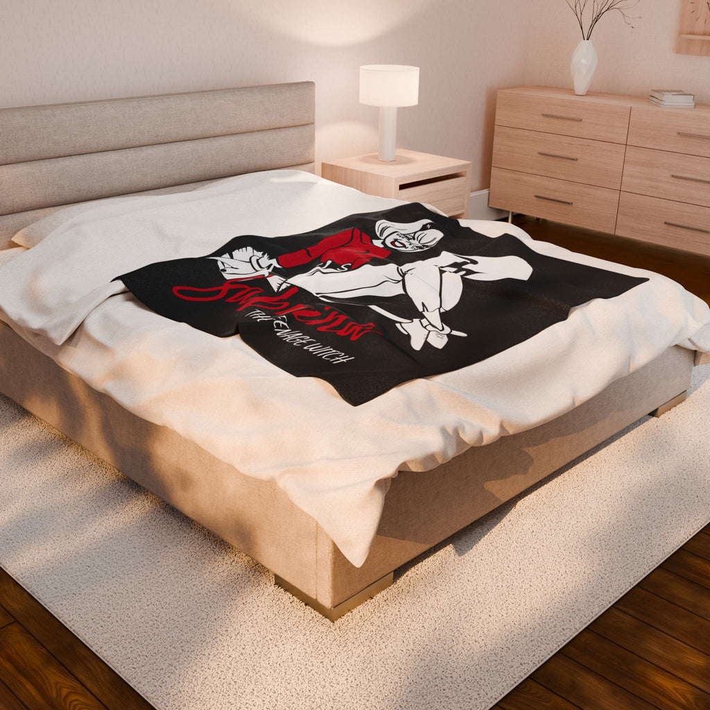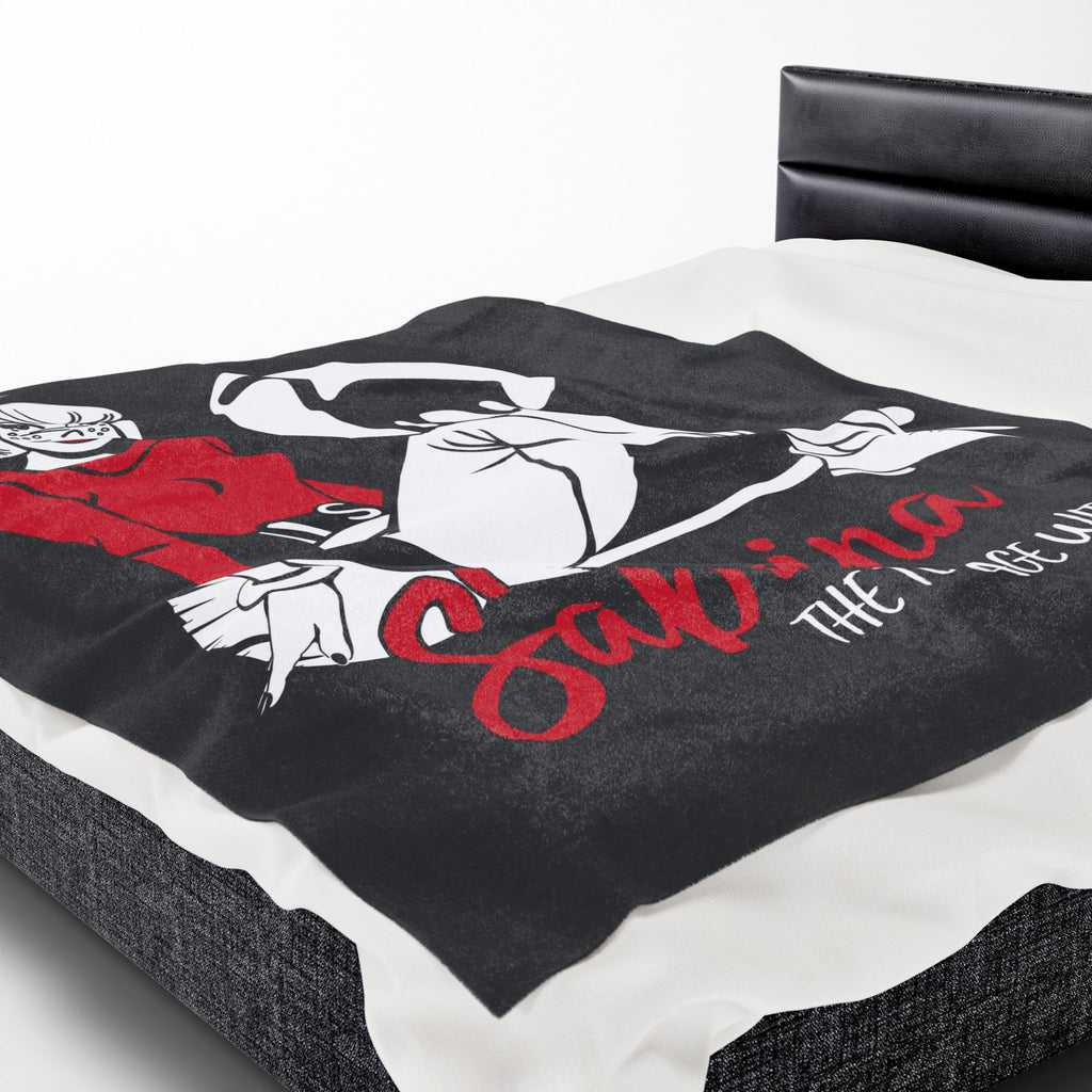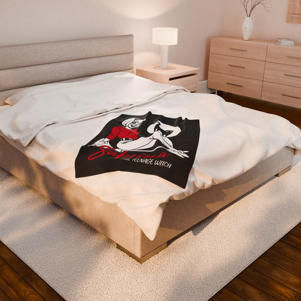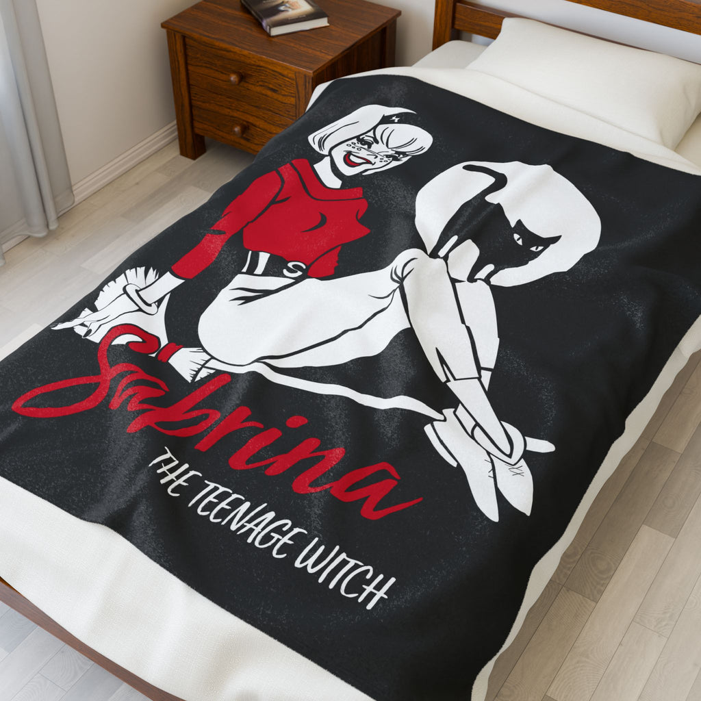 Create a cozy and warm atmosphere at home with this plush velveteen blanket with the Sabrina the Teenage Witch on Broom Design. Featuring retro Archie Comics Sabrina artwork, this blanket is a must-have for any Sabrina fan! It is soft to the touch and perfect for any home.