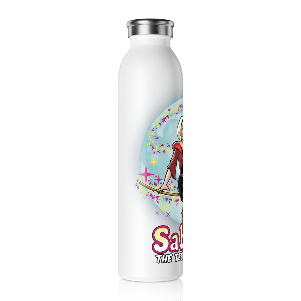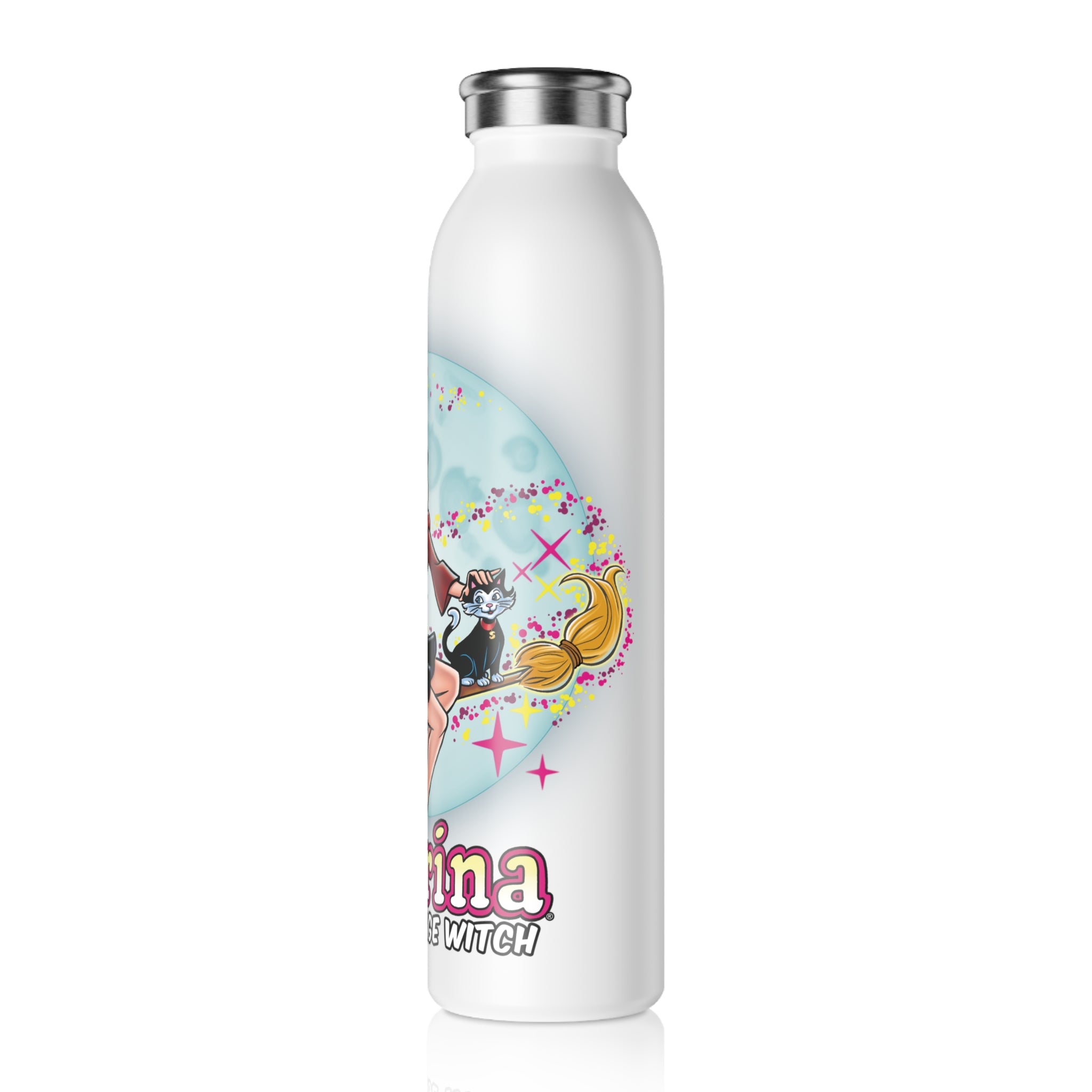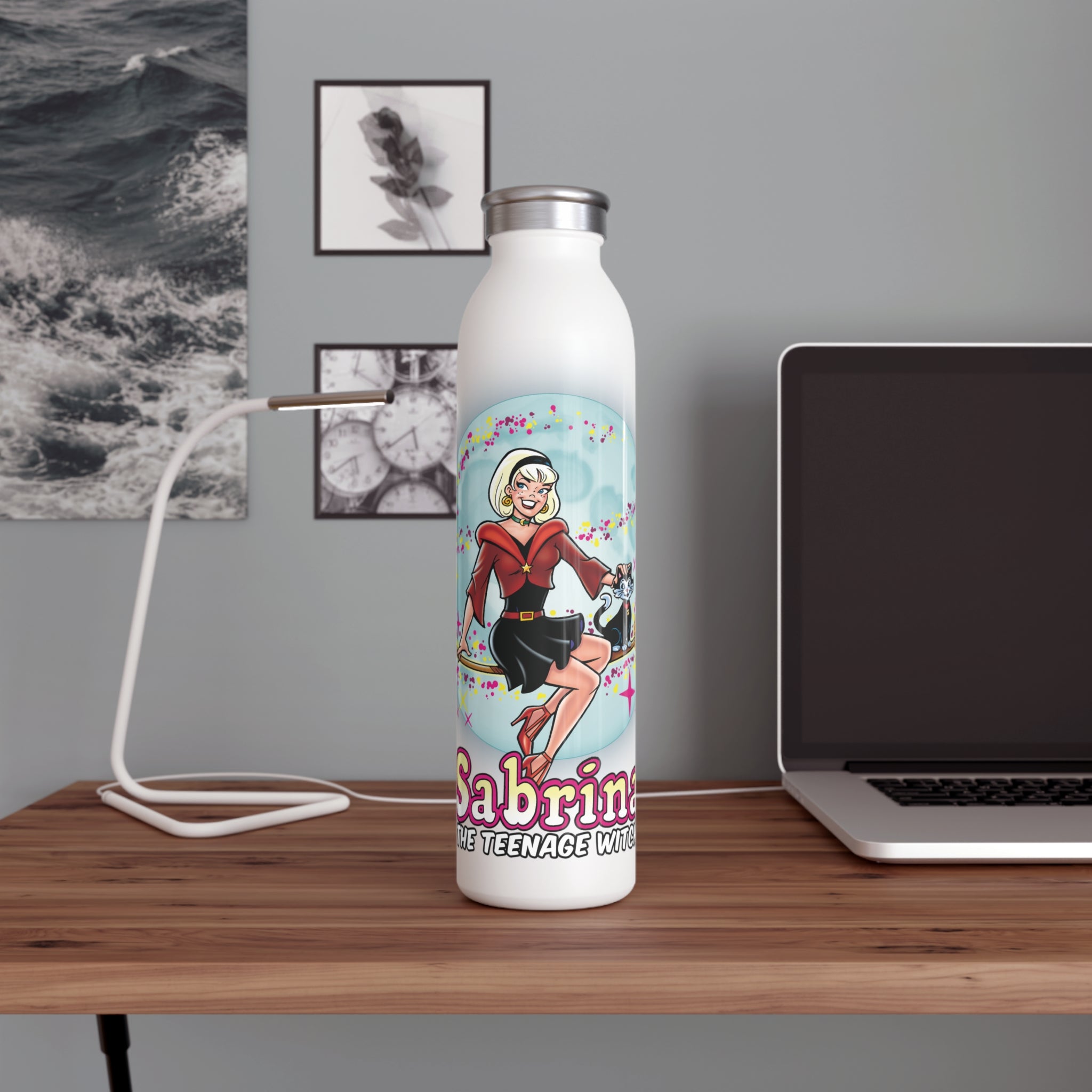 Sabrina The Teenage Witch on Broom Modern Design Stainless Steal 20oz water bottle features a modern take on the classic Sabrina the Teenage Witch on a broom with Salem.