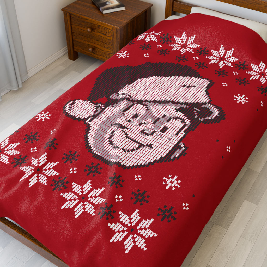 Create a cozy and warm atmosphere at home with this plush velveteen blanket with the Archie Andrews Holiday Sweater Design. The design is a call back to a vintage holiday sweater. It is soft to the touch and perfect for any home.