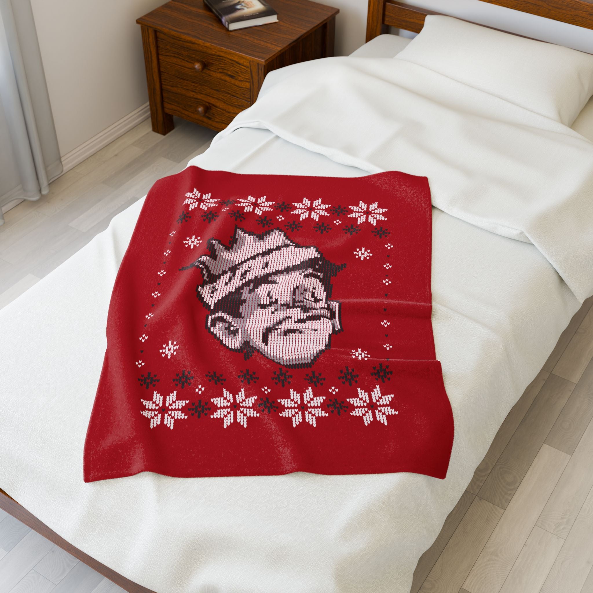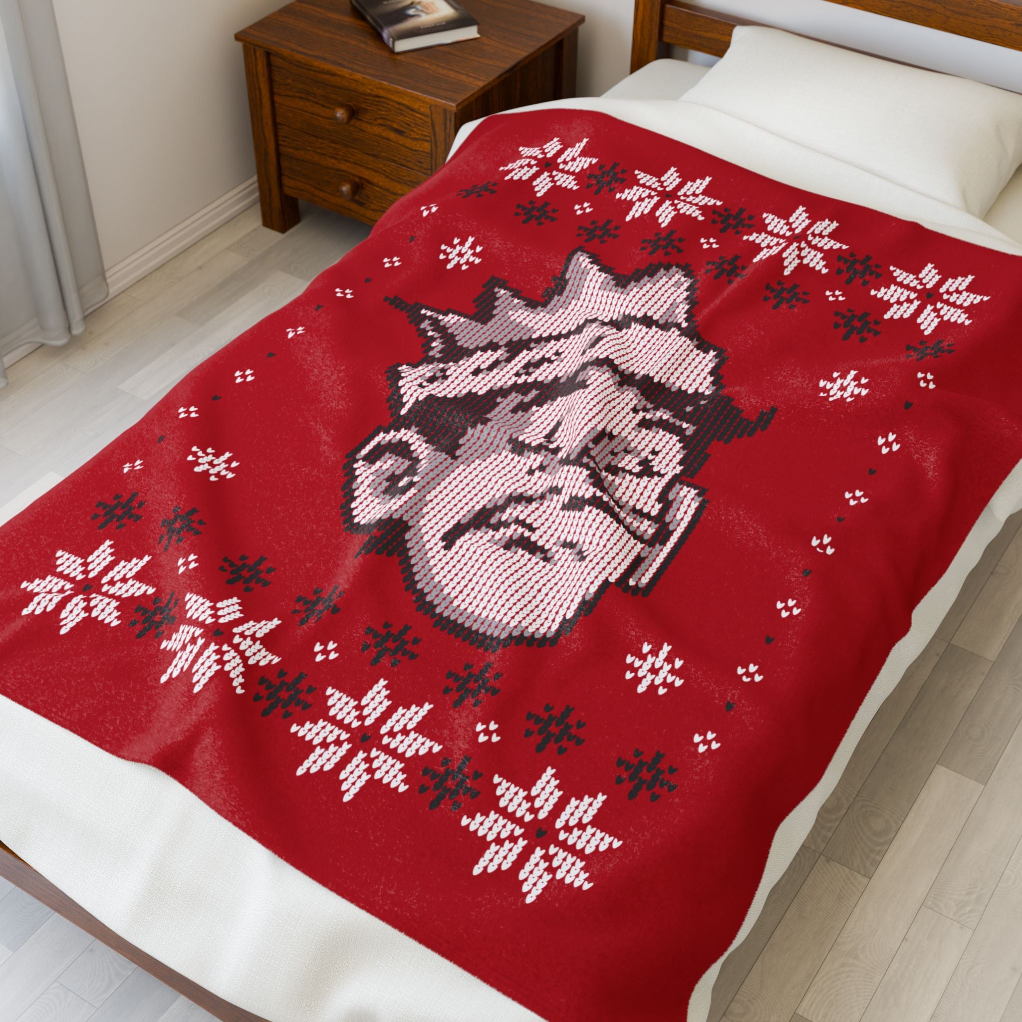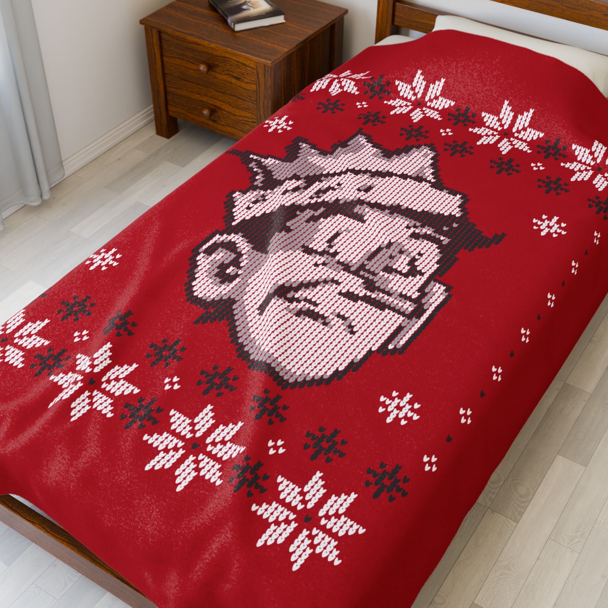 Create a cozy, warm atmosphere at home with this plush velveteen blanket featuring the Jughead Jones Holiday Sweater Design. The design is a call back to a vintage holiday sweater. It is soft to the touch and perfect for any home.