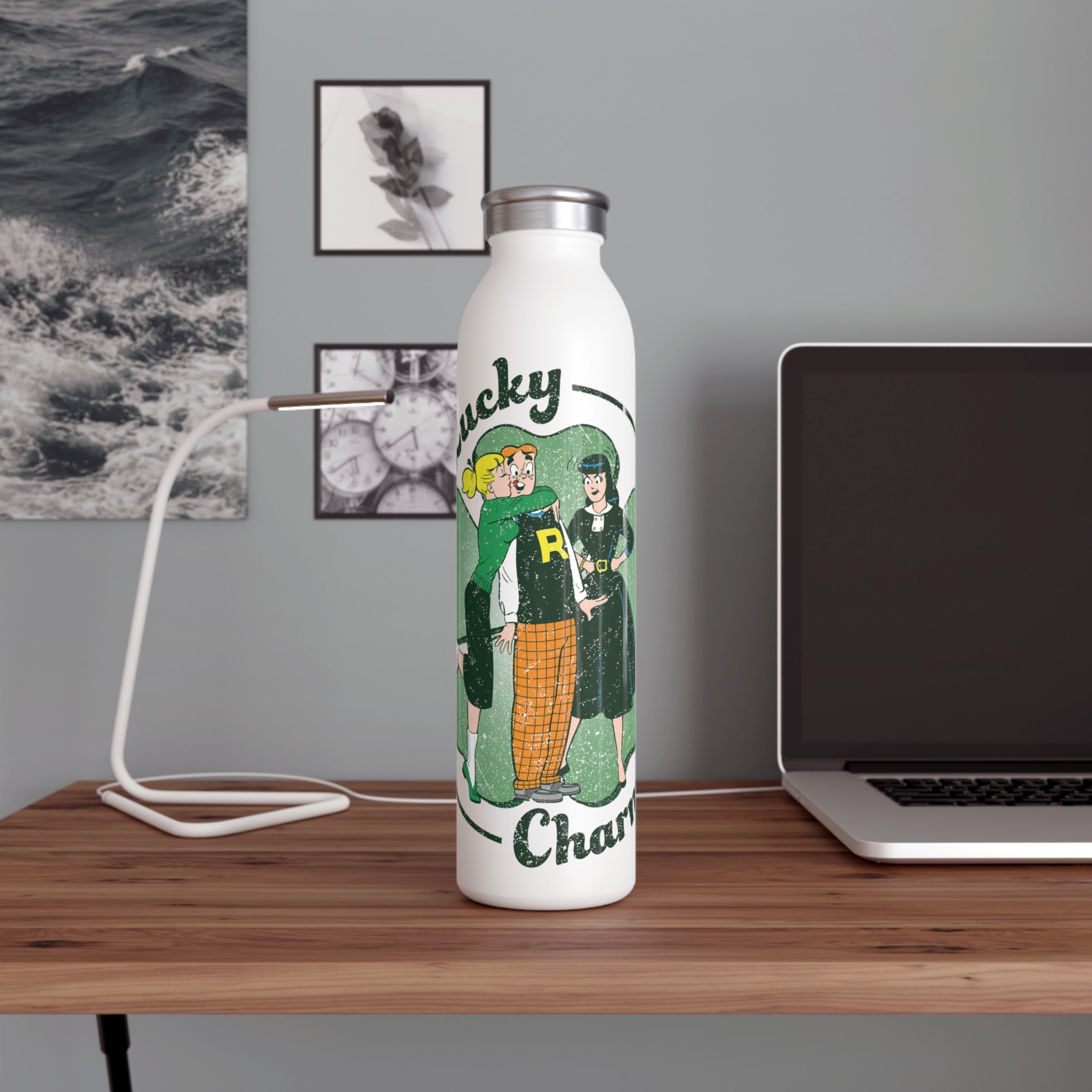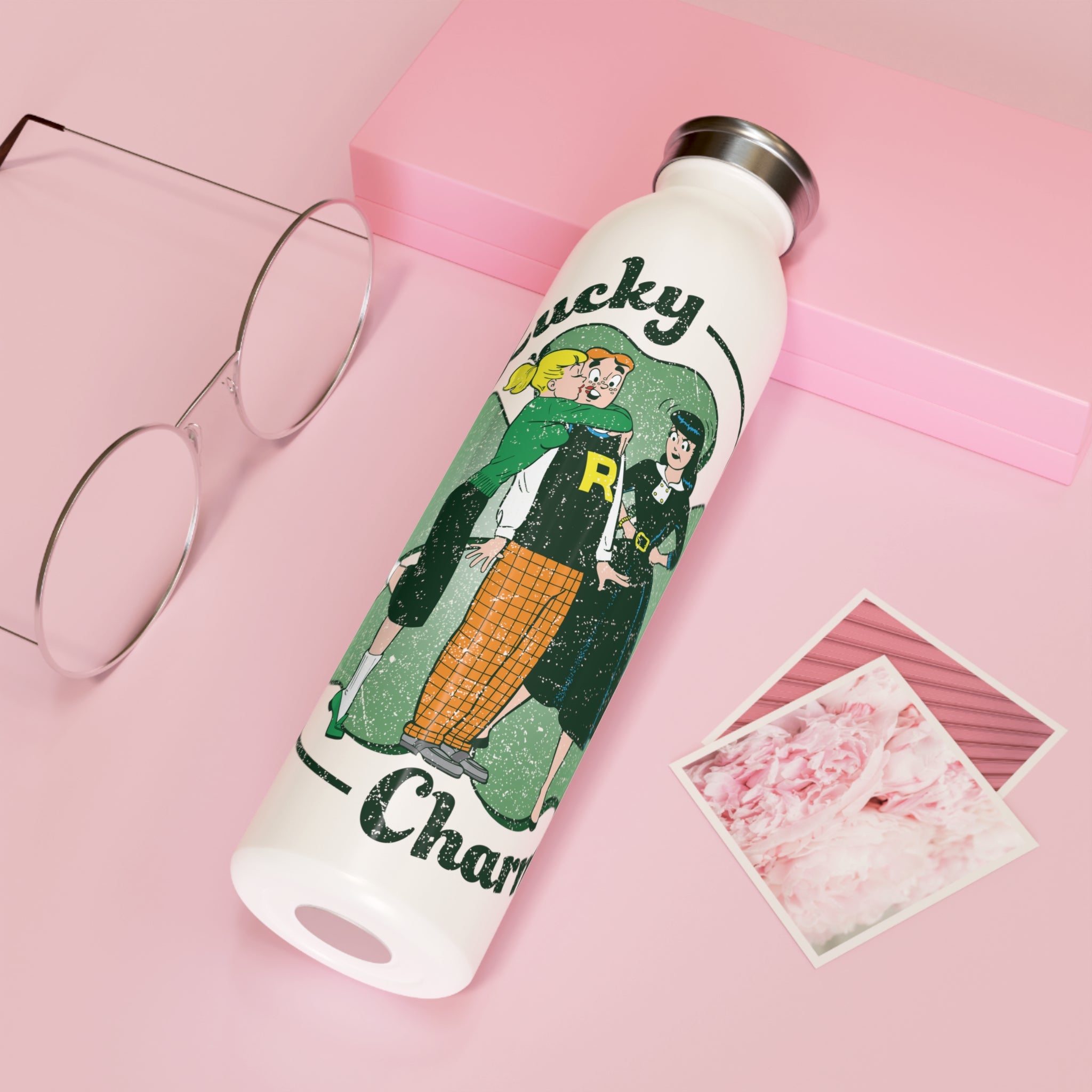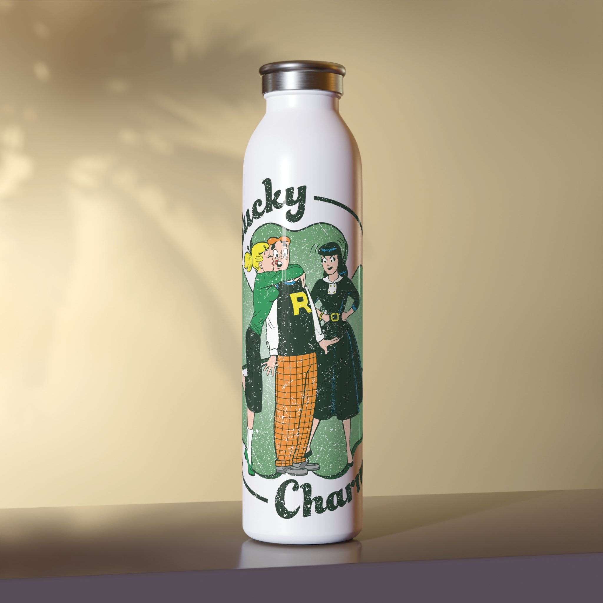Celebrate St. Patrick's Day all year round with the "Archie Lucky Charm" design water bottle featuring Archie, Betty, and Veronica.