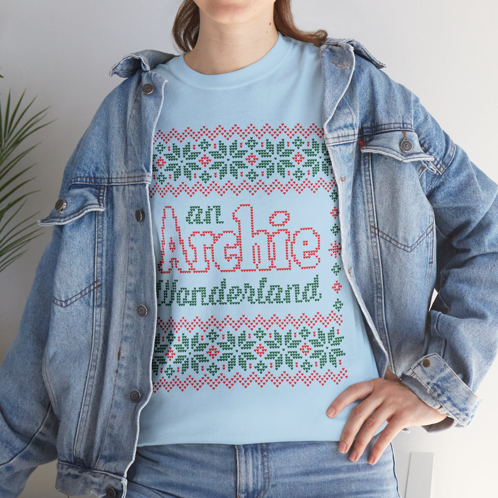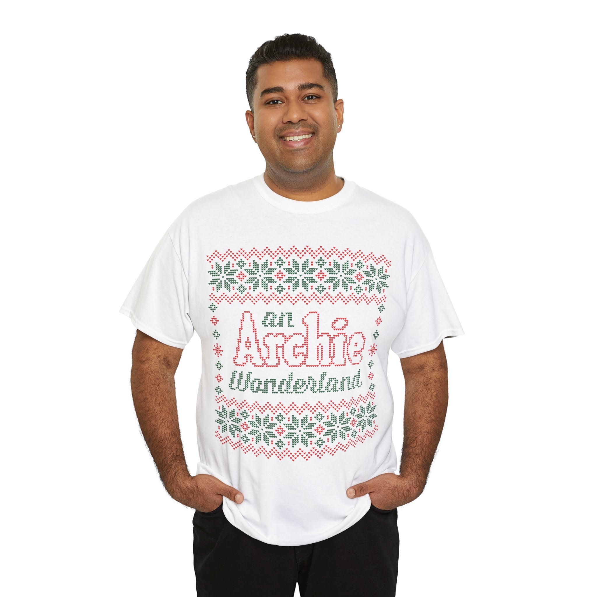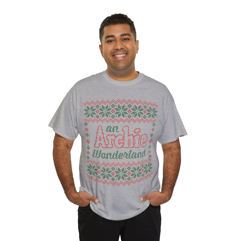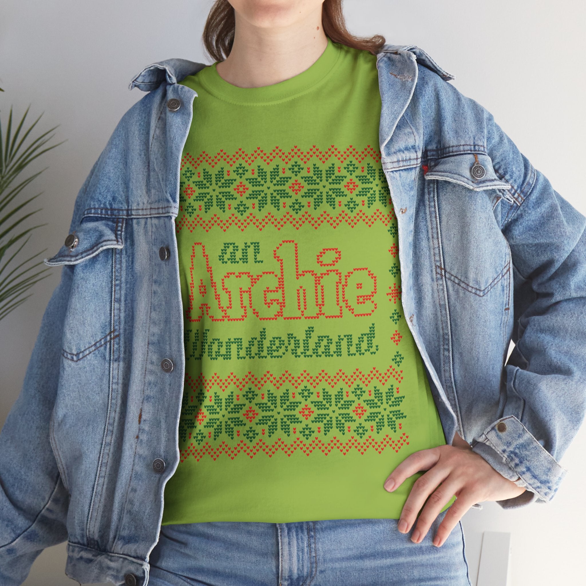An Archie Wonderland Sweater Design Unisex Heavy Cotton Tee is a call back to a vintage holiday sweater.