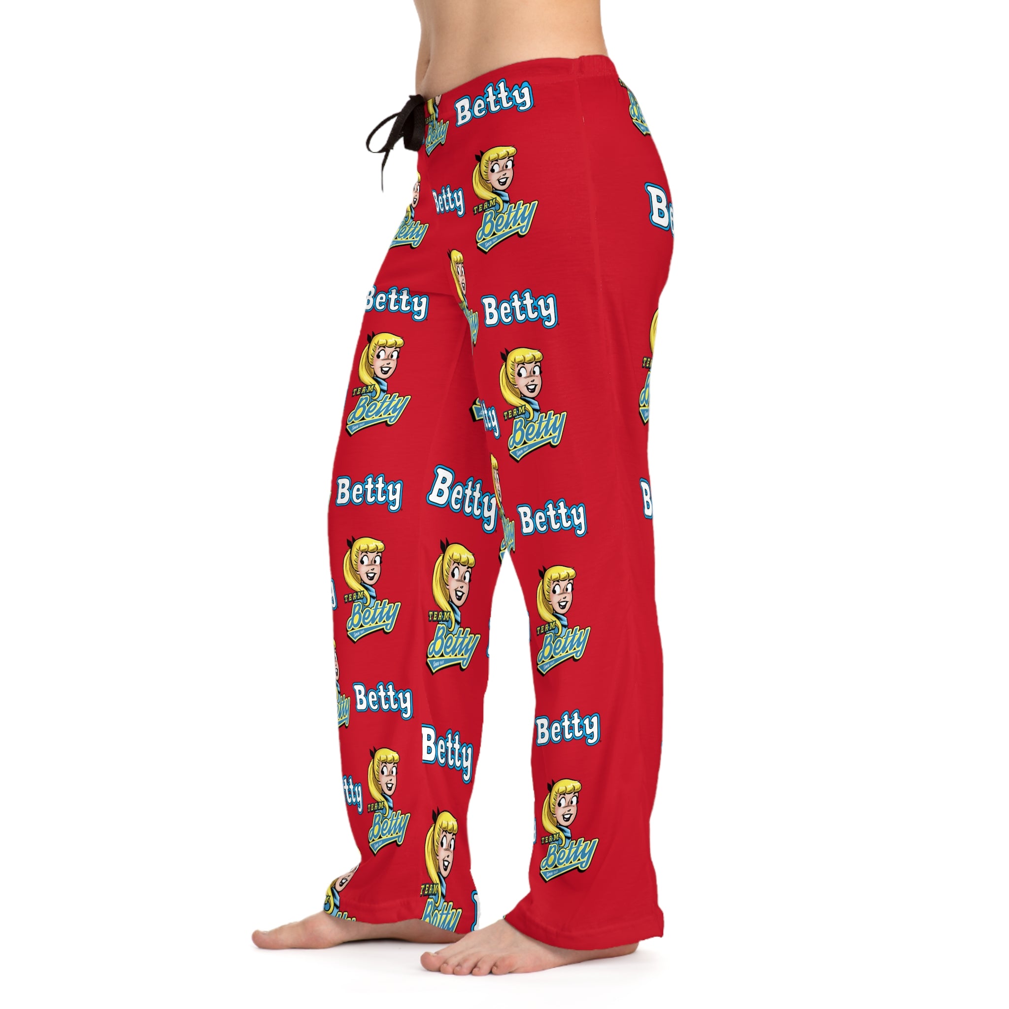Soft, relaxed pajama pants printed edge-to-edge with a playful retro comic pattern. The lightweight polyester jersey drapes easily for lounging and sleep, while a back elastic band and flat drawstring let you dial in a comfy fit. Bright, crisp colors cover every inch so the vintage cartoon faces and name repeat with bold clarity. These pants bring a cheerful, nostalgic vibe to slow mornings, movie nights, and pajama parties — comfortable enough to curl up with a book, lively enough to spark conversation when friends drop by.